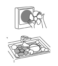 ④そのあと柔らかいスポンジで軽くこすり洗いし、よく水洗いし、乾かします。